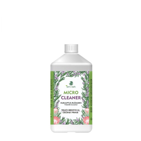 Micro Cleaner eukaliptus-ružmarin je prirodno fermentiran koncentrat za čišćenje i pranje. Eliminira neugodne mirise u kuhinjama, toaletima i pomoćnim prostorijama. Koristi se za: